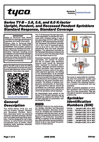 – Tyco TY-B, 8.0 K-factor. Upright and Pendent style sprinklers